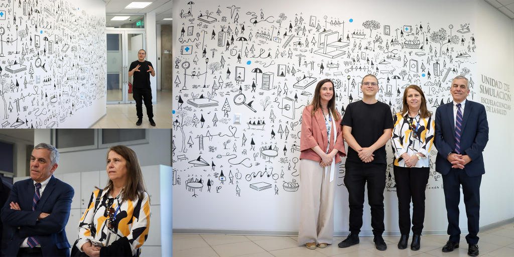 Paralelamente, se realizó la presentación formal del mural, donde el artista que le dio vida a la obra, Tomas Id, explicó su significado e inspiración, detallando cómo esta busca mostrar la esencia de cada uno de los cuatro departamentos que forman parte de la Escuela: Kinesiología, Nutrición y Dietética, Terapia Ocupacional y Fonoaudiología.